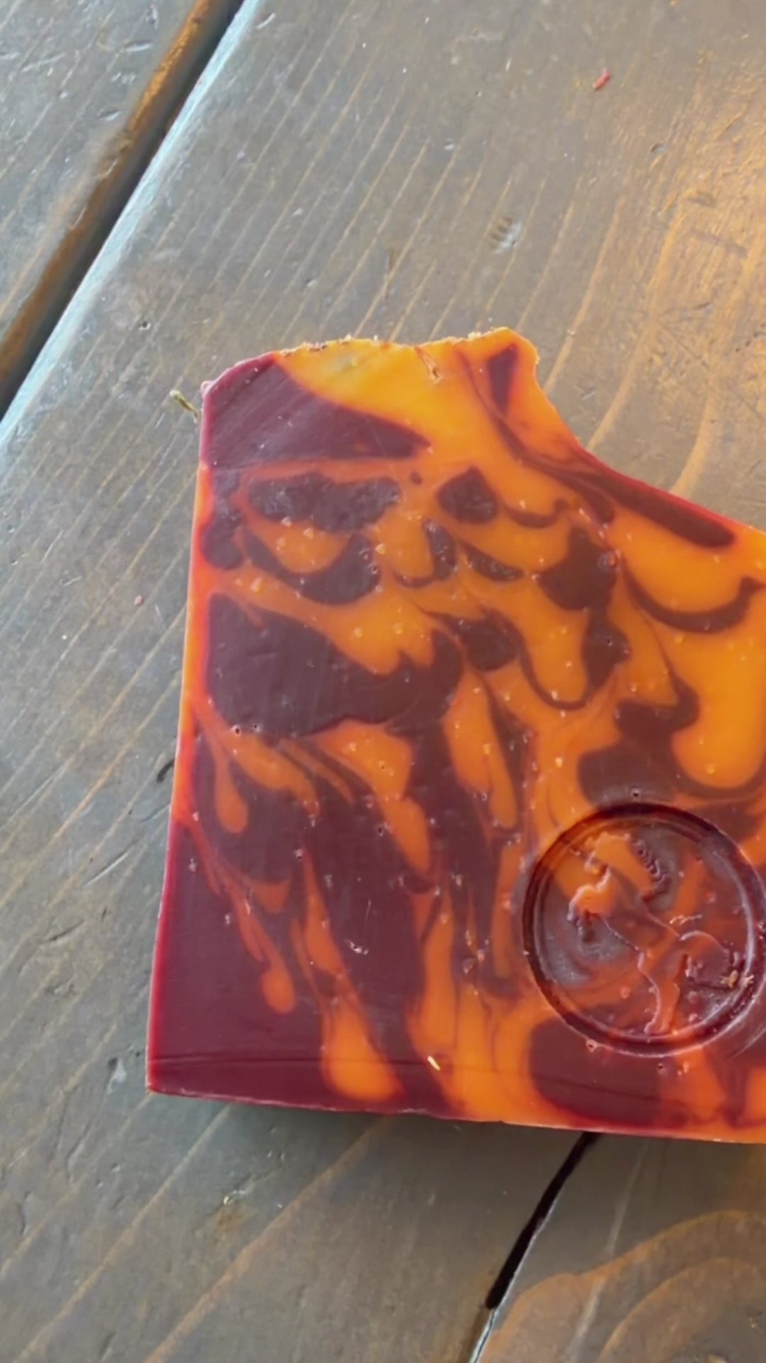 Ingredients: Saponified oils of organic olive oil, coconut oil, shea butter & castor oil. Kangen Beauty water infused with Carnelian crystal. Himalayan rhubarb oil & Annatto oil. Orange, ginger, cedarwood & cinnamon cassia essential oils. Topped with Carnelian crystal, tiger lily & calendula.